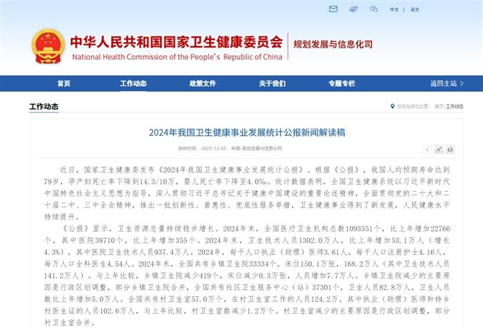 2024年我国卫生健康事业发展统计公报新闻解读稿