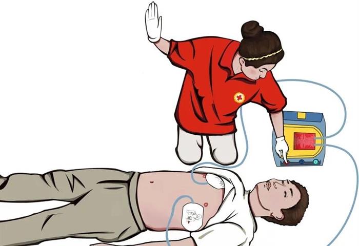 首先,需进行高质量的心肺复苏,胸外按压深度至少5厘米,速率为每分钟100~120次,30次按压后2次人工呼吸,交替进行。当医护人员到来前,除了心肺复苏,还应该使用AED(自动体外除颤器)。