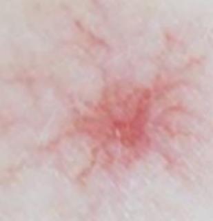 所以,一旦发现蜘蛛痣,就应该赶紧去专科就诊。判断一颗“红色的痣”是不是蜘蛛痣的方法很简单——用尖的东西去按压中间的红点,血丝就会消失,如果松开,这些“蜘蛛腿”又会出现,那就是蜘蛛痣了。