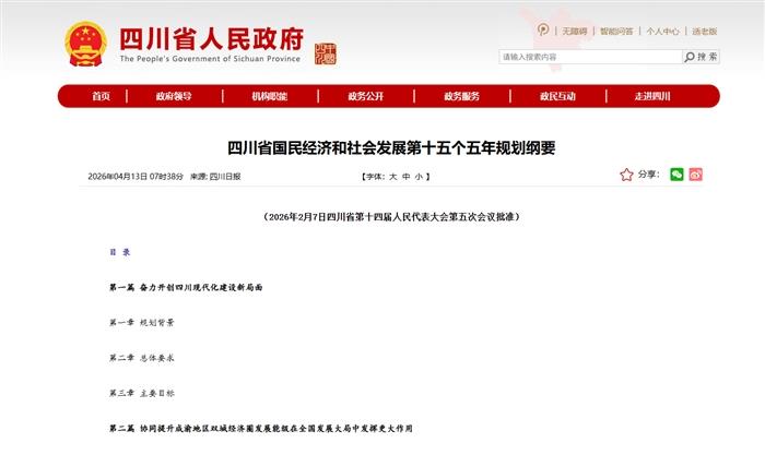 四川省国民经济和社会发展第十五个五年规划纲要(2026年2月7日四川省第十四届人民代表大会第五次会议批准)