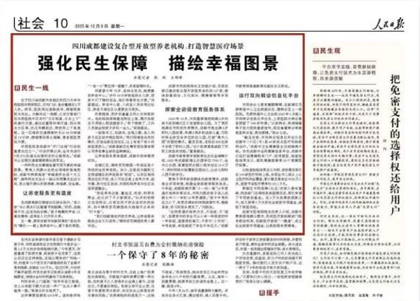 12月8日,人民日报报道《强化民生保障 描绘幸福图景》四川成都建设复合型开放型养老机构打造智慧医疗场景。