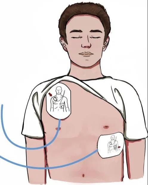 2.患者佩戴有植入式心脏设备,电极片避开植入位置,不可直接贴在设备上;