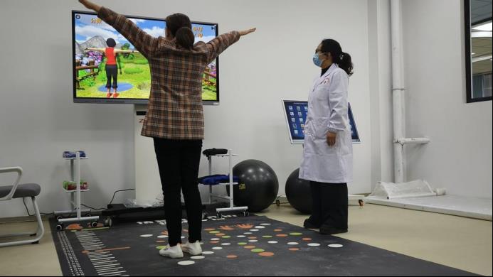 “这是针对上肢、认知的精准训练,系统实时捕捉动作评分,助力科学规划。”治疗师黄俊玲介绍。